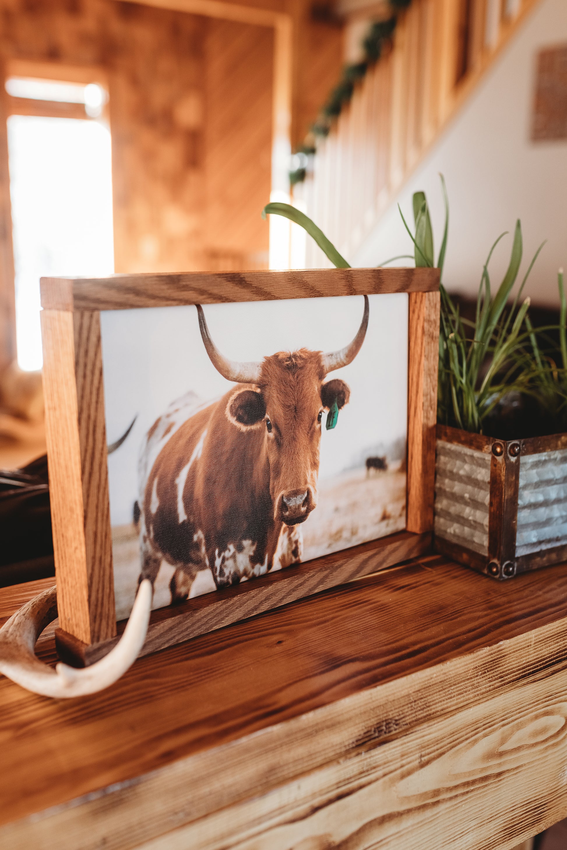 Hand framed traditional canvas that is a the perfect size to be a shelf sittier, or hung on a smaller wall space.